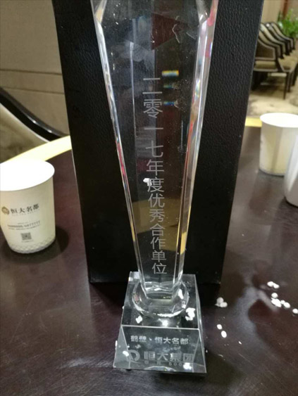 恒大2017年度优秀合作单位奖杯